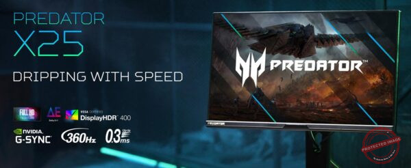 Acer Predator X25 bmiiprzx 24.5″ FHD (1920 x 1080) Dual Drive IPS Gaming Monitor | NVIDIA G-SYNC | Up to 360Hz | Up to 0.3ms | 99% sRGB | 400nit | DisplayHDR 400 | Display Port 1.4 & 2 x HDMI 2.0
